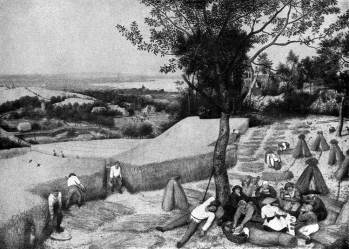 Брейгель и раньше стремился передать движение жизни, стремился найти единственно верную пропорцию в масштабном соотношении мира и человека. Он достиг цели, взяв исходной точкой своих исканий жизнь в ее естественном, трудовом, народном аспекте. Мир, вселенная, не утратив своей величественной грандиозности, приобрели конкретные черты родной страны. Человек получил смысл существования в естественном труде, в разумном и гармоническом бытии людского коллектива, в слиянии этого коллектива с природой.