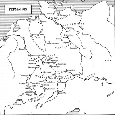 На рубеже 14 и 15 вв. в немецких землях не только не наблюдалось тенденции к централизации страны, но, наоборот усиливалась ее раздробленность, содействовавшая живучести феодальных устоев. Зарождение и развитие в отдельных отраслях промышленности ростков капиталистических отношений не приводило к объединению Германии. Она представляла собой множество крупных и мелких княжеств и самостоятельных имперских городов, которые вели почти независимое существование и всеми способами старались сохранить такое положение вещей. Этим в значительной мере определялся и характер классовых взаимоотношений. В своей работе «Крестьянская война в Германии» Энгельс так характеризует общественную жизнь Германии к началу 16 в.: «...разные сословия империи — князья, дворяне, прелаты, патриции, бюргеры, плебеи и крестьяне — составляли чрезвычайно хаотическую массу с весьма разнообразными, во всех направлениях взаимно перекрещивающимися потребностями». (К.Маркс и Ф.Энгельс, Соч., т.7, стр.357 - 358.). Враждебные, узкоместные интересы сословий часто приводили их к противоречиям и взаимным столкновениям, что мешало главному делу — борьбе с феодализмом, преодолению средневековых традиций в экономике, политике, культуре, в укладе общественной жизни. Непрерывно нарастающее всеобщее недовольство, временами прорывавшееся в виде отдельных местных восстаний, еще не приняло в это время характера всенародного революционного движения, охватившего Германию в первые десятилетия 16 века.
