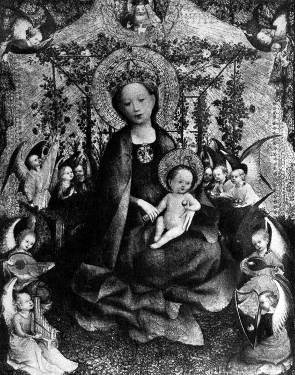 илл.310 Стефан Лохнер. Мадонна в розовой беседке. 1440-е гг. Кельн, музей Вальраф-Рихартц