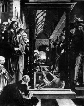 илл.312 Михаэль Пахер. Воскрешение Лазаря. Боковая створка алтаря св. Вольфганга. Закончен в 1481 г. Сент Вольфганг, церковь.