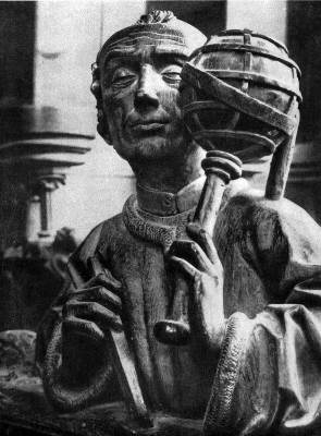 Значительное место в немецком искусстве 15 в. занимает скульптура. Ее общий характер, так же как и пройденный ею в 15 в. путь развития, близки к немецкой живописи этого времени. Но в скульптуре еще сильнее ощущаются готические традиции; развитие реалистических элементов наталкивается здесь на еще более упорное сопротивление старых, средневековых представлений. Здесь по-прежнему господствует отвлеченная символика религиозных образов, сохраняется система условных жестов и атрибутов, условная, резко подчеркнутая экспрессия лиц. Эти готические черты продолжают существовать в течение всего 15 в., нередко целиком подчиняя себе творчество отдельных художников, особенно в более отсталых областях Германии.