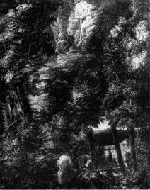 В полной мере новаторский характер носят лесные пейзажи Альтдорфера. Эти маленькие картины, выполненные в почти миниатюрной технике, обладают особым очарованием. В картине «Св. Георгий в лесу» (1510; Мюнхен) художник изображает сказочный дремучий лес с исполинскими деревьями, закрывающими все пространство неба. Маленькая фигурка св. Георгия на коне совершенно поглощена наступающим на нее вековым бором. В узкий просвет между стволами видна темно-синяя даль. Лесная чаща переливается зеленоватыми, синими и красными оттенками. Тщательно и мастерски обрисован каждый листок.