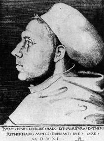 Высшим достижением портретного искусства Кранаха является профильное изображение Лютера (1520—1521, гравюра на меди). Оно сделано в период наибольшей близости Кранаха с главой реформации. Художник создает в нем такое простое, серьезное изображение человека, какое больше не встречается в его искусстве. Правдиво и точно обрисовывает он некрасивый профиль Лютера. Сопоставлением более светлых поверхностей лица и одежды с серебристыми тенями и темным фоном он придает образу особенную живость, отличающую его от других портретов художника. Ни в одном произведении не стоит Кранах так близко к Дюреру, как здесь. Этот портрет как бы суммирует все его завоевания в области передачи реальной действительности.