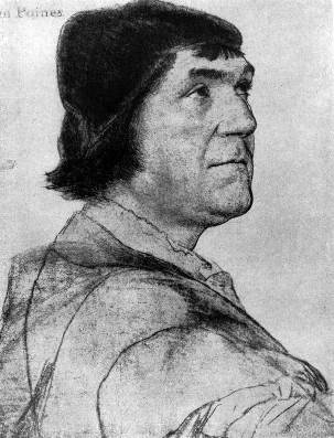илл.334 Ганс Гольбейн Младший. Портрет Джона Пойнса. Рисунок. Цветные мелки, китайская тушь на розовой бумаге. 1530-е гг. Виндзор, Королевская библиотека.