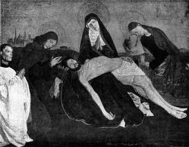 илл.355 Мастер авиньонской школы. Оплакивание Христа. Середина 15 в. Париж, Лувр.