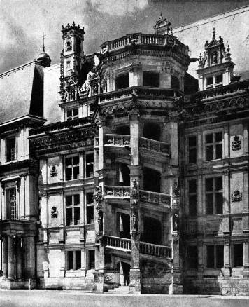 При Франциске I по всей Франции развернулось обширное строительство, которое осуществляли как приглашенные из Италии, так и местные архитекторы. Оживилась строительная деятельность в Париже. Начатое еще при Людовике XII сооружение замка в Блуа было продолжено под руководством французских зодчих Шарля Виара и Жака Сурдо. Рядом с Корпусом Людовика XII, воздвигнутым из кирпича и белого камня по готической строительной системе и несущим лишь элементы ренессансного декора, они создали наиболее примечательную часть ансамбля—Корпус Франциска I (1515—1524), совершенно самостоятельную и новую по типу постройку. Это первое ренессансное сооружение Франции, хотя и сохраняющее отдельные готические черты. Северный внешний фасад его вздымается, подобно старинному замку Амбуаз, над высоким обрывом. Своеобразен выходящий во двор южный фасад корпуса: двойные тяги балюстрад четко разделяют три этажа один от другого, стройные ренессансные пилястры членят этажи по вертикалям, богато декорированный карниз и ажурная балюстрада завершают сооружение. Самая замечательная часть фасада — наполовину выступающая из него лестничная башня. Она обильно украшена орнаментом, составленным из масок, трофеев, эмблем, канделябров, различных декоративных мотивов, а также скульптурой. Три этажа балконов с балюстрадами, расположенными диагонально, указывают на движение лестницы и вносят элемент динамики и напряженности ритма в оформление всего фасада. Лестница в Блуа стала образцом для многих лестниц в постройках французского Ренессанса, например в королевском замке Шамбор. Грандиозным строительством замка Шамбор последовательно руководили французские мастера Жак и Дени Сурдо, Пьер Нево, прозванный Тринко, и другие.