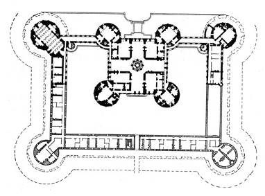 рис.стр.430 Замок Шамбор. 1519-1540-е гг. Архитекторы Жак Сурдо, Дени Сурдо, Пьер Невой другие. План.
