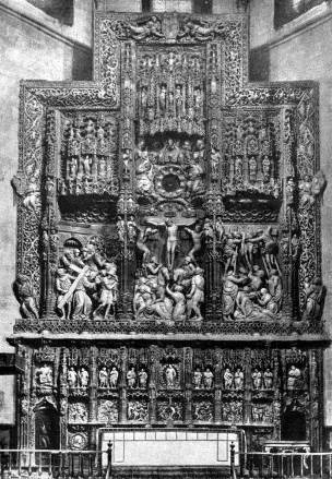 В дальнейшем развитии скульптуры начала 16 в. в композицию ретабло включались классические архитектурные формы и скульптурные изображения, образующие своеобразное сочетание с ярким декоративным эффектом его общего облика.