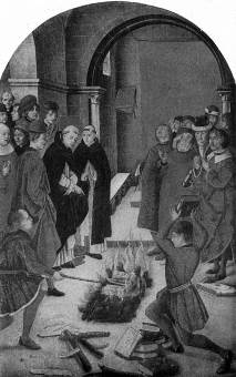 илл.371б Педро Берругете. Св. Доминик, сжигающий еретические книги. Между 1480 и 1490 гг. Мадрид, Прадо.
