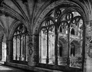 Монастырь иеронимитов в Белеме, усыпальница королей и героев Португалии — крупнейшая постройка начала 16 в. Сооружение его было начато в 1502 г. архитектором Бойтаком, а в 1517 г. продолжено талантливым зодчим Жуаном ди Каштилью (умер в 1552 г.). В творчестве Каштилыо сильнее проявились элементы собственно ренессансной архитектуры, которые органически слились с элементами стиля мануэлино. Особенно интересен квадратный, со стороной в 50 м внутренний двор монастыря. Торжественный ритм охватывающей обширное пространство клуатра двухъярусной ренессансной аркады с ее богатейшей резьбой из бледно-золотистого камня, сочетание крупных и более мелких дробных форм, типичная для мануэлино сочность и пышность декора создают один из самых впечатляющих образов среди произведений архитектуры подобного типа на Пиренейском полуострове.