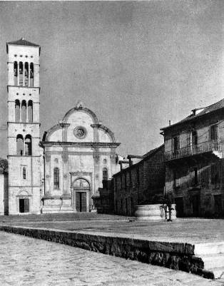 Ренессансные формы архитектуры появляются в зодчестве Далмации со второй половины 15 в. В 14 и первой половине 15 столетия соборы, колокольни, гражданские сооружения и частные дома создавались еще целиком в готическом духе, однако готика в Далмации гораздо более спокойна, уравновешенна и ясна, нежели в странах Западной Европы. В этом сказалась одна характерная особенность, которая имела огромное значение для всей архитектуры Далмации. Здесь, на далматинской земле, не было такого громадного разрыва между античной строительной традицией и архитектурой следующей эпохи. Одно из наиболее значительных архитектурных сооружений поздней античности — комплекс дворца императора Диоклетиана (4 в.) близ римской Салоны (теперешнего Сплита) — оказало громадное воздействие на дальнейшее развитие местного зодчества. Романское строительство в Далмации непосредственно продолжало и развивало принципы позднеантичного зодчества. Мавзолей Диоклетиана с 8 в. был превращен в главный христианский собор славянского Сплита. Позднее, в 13 в., рядом была построена колокольня, в которой использовались отдельные строительные детали римской постройки, и сам ее общий замысел носил явные признаки следования античным формам. Прямое использование римских архитектурных деталей мы видим и в городе Задаре. В начале 9 в, здесь строится церковь св. Доната, при возведении которой были использованы колонны, капители и плиты, взятые из расположенного рядом римского форума. Эта непосредственная связь с античным наследием обусловила высокий качественный уровень и почти классический характер романской архитектуры в Далмации. То же спокойствие, ясность, четкая соразмерность частей и целого лежит в основе местной готики, определяя ее специфическое своеобразие.