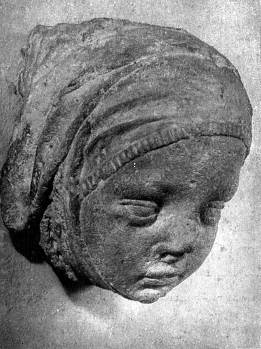 404 а. Женская головка из замка Буды. Красный мрамор. Ок. 1400 г. Будапешт, Музей крепости Буды.