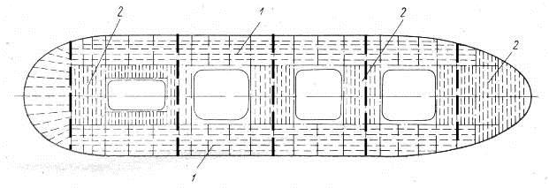 1 – стрингеры; 2 – дополнительные стрингеры; 3 – флоры;