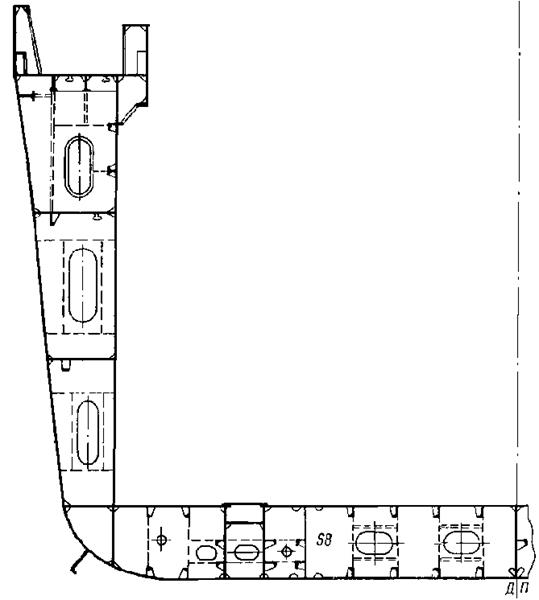 На рис. 5.27 представлена конструкция корпуса отечественного лихтеровоза «Севморпуть».
