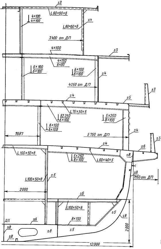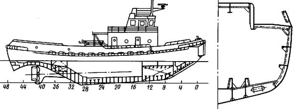 Рис. 6.12. Мидель-шпангоут речного толкача «ОТ-800»