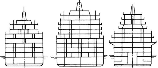 Рис. 6.24. Схемы архитектурно-конструктивных типов пассажирских судов:
