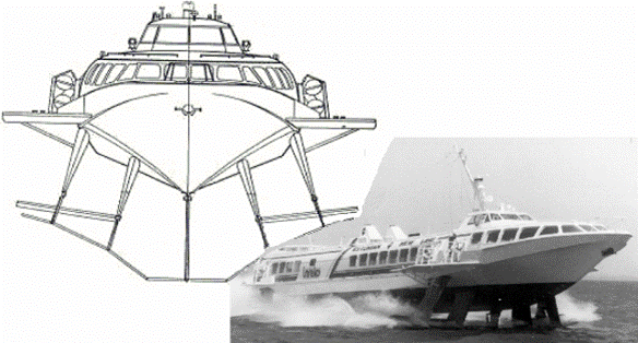 Рис. 7.11. КПК «Пегасус» (три глубокопогруженных крыла катера,