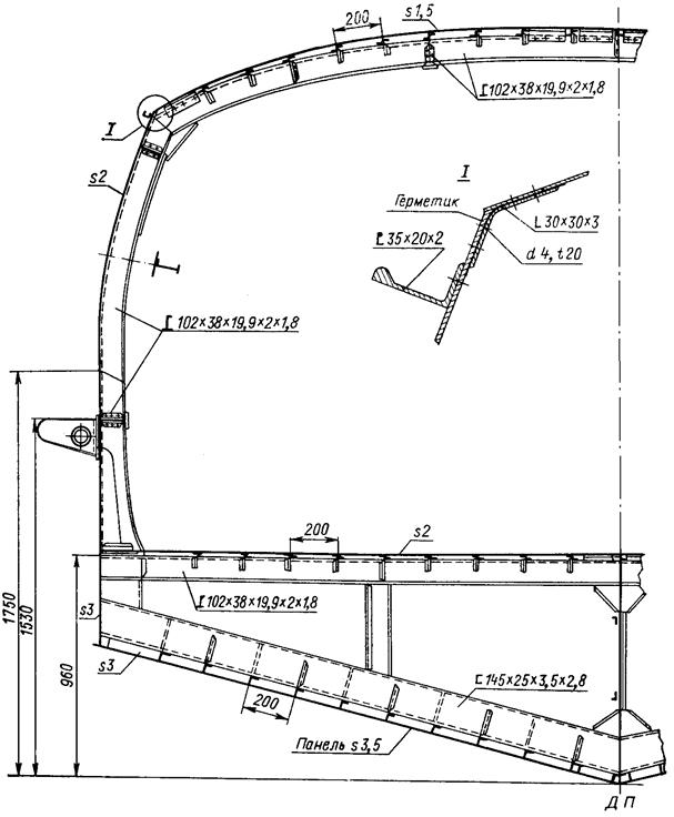 Рис. 7.15. Мидель-шпангоут СПК «Комета» /7/