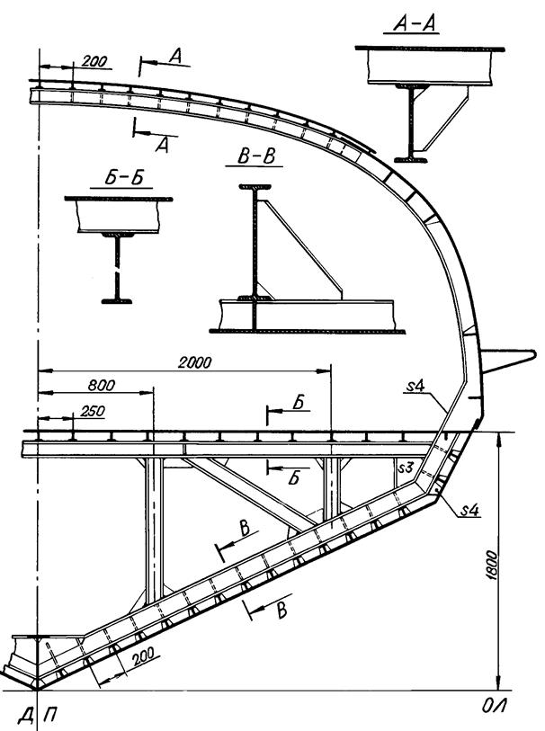 Рис. 7.14. Мидель-шпангоут речного СПК «Восход» /16/