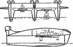 Рис. 7.29. Экраноплан-тримаран с глиссирующими корпусами
