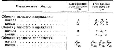 Обозначения начал и концов обмоток трансформаторов приводятся в табл. 12-1.