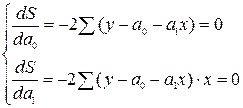 После несложных преобразований получаем систему нормальных уравнений для определения величины параметров