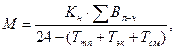 Минимальное число локомотивов М можно определить исходя из суточных затрат локомотиво-минут на выполнение того или иного объема работы и суточного баланса времени локомотива, который может быть реально использован для этого вида работы: