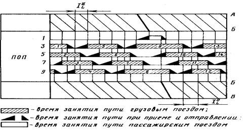 и т.д., при наступлении которых заканчивается весь цикл операций по обработке, и эти моменты фиксируют готовность поездов к отправлению. Для фактического отправления необходимо, однако, чтобы выход из парка не был занят поездами более высокого приоритета (пассажирскими, пригородными, ускоренными и т. д.). Учитывая это, действительные моменты времени отправления поездов, как правило, не совпадают с моментами