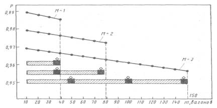 где Piв - надежность вагона; Pjл - надежность локомотива; m-число вагонов в составе;