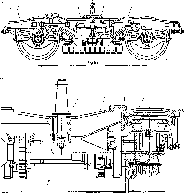 Рис. 3.45. Тележка типа ТСК-1: а — общий вид; 6 - -- поперечный разрез