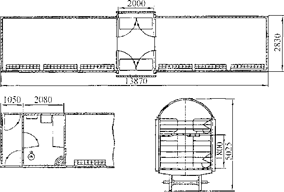 Двухъярусные крытые вагоны для перевозки скота (рис. 4.9) изготавливают двух моделей: 11-240 (без служебного отделения) и 11-246 (со служебным отделением).