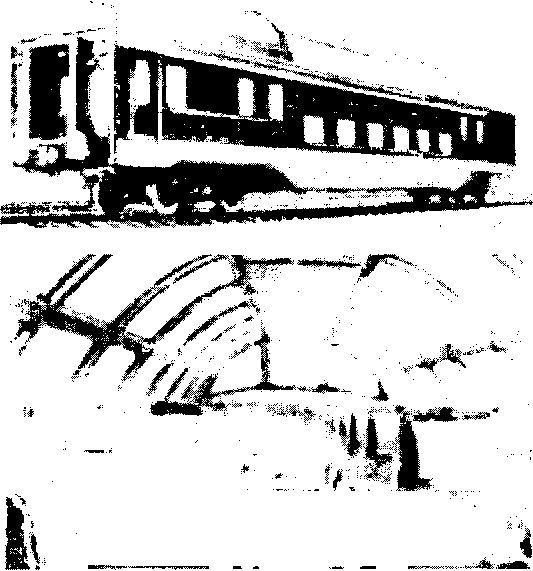 пассажиров, едущих на небольшие расстояния. Опыт эксплуатации показал, что применение двухэтажных вагонов в пригородном сообщении позволяют пропускную способность существующих линий увеличить на 30 %, а эксплуатационные расходы снизить от 10 до 25 % и более и уменьшить капитальные вложения в расчете на одно пассажирское место на 5—10 %. При этом масса двухэтажных вагонов, приходящаяся на одного пассажира, составляет 260 кг против 420 кг при одноэтажной компоновке, уменьшаются также энергозатраты на тягу и тяговое обеспечение. Средняя часть кузова двухэтажного вагона имеет пониженный пол. Над тележками расположены тамбу ры с входными дверями и лестницами для доступа на второй этаж. В пассажирском парке имеются туристические двухэтажные вагоны с застекленным куполом для обозрения местности (рис. 5.10).
