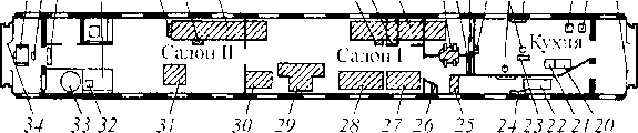 На рис. 5.12 приведены схемы размещения электрооборудования купейного вагона и вагона-ресторана.