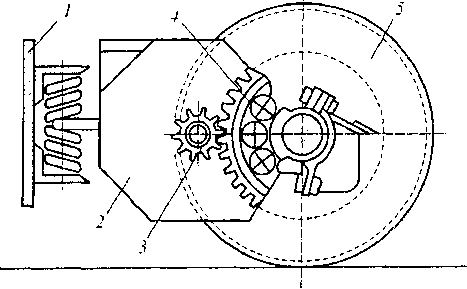 Рис. 6.13. Зубчатая передача тягового привода: 1 рама тележки; 2 — тяговый электродвигатель; 3— малое зубчатое колесо; 4 — большое зубчатое колесо; 5 — колесная пара