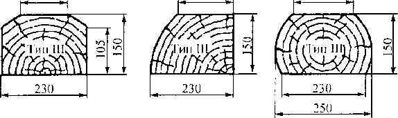 В зависимости от назначения деревянные шпалы и стрелочные брусья изготавливаются трех типов, отличающихся размерами поперечного сечения: I — для главных путей; II — для станционных и подъездных путей; III — для ма-
