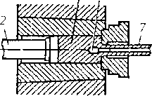 Волочение — технологический процесс деформирования металла протягиванием катаных или прессованных заготовок через отверстие с целью уменьшения их поперечного сечения или получения более точных размеров и гладкой поверхности. В результате усилия Р (рис. 13.8), прикладываемого к заостренному концу заготовки, она протягивается, приобретая форму и размеры отверстия волоки, ее поперечные размеры уменьшаются, а длина увеличивается. Для уменьшения трения обрабатываемые заготовки покрывают густыми смазочными материалами. Волочением получают проволоку (рис. 13.8, и) различного диаметра (менее 0,01 мм) и трубы тремя способами: без оправки (б), на короткой неподвижной оправке (в) или на движущейся длинной оправке (г).