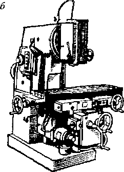 | Рис. 13.10. Основные типы фрезерных станков: а — универсально-фрезерный; б в — продольно-фрезерный |