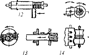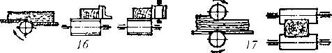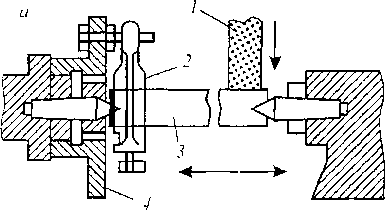 Рис. 13.5. Схемы процессов прокатки металлов: а — продольная; б — поперечная; в — винтовая круглых периодических профилей; 1 — прокатываемый материал; 2, 3, 4 — валки