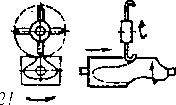 В зависимости от положения оси вращения форм различают горизонтальные и вертикальные литейные центробежные машины. Горизонтальные машины (рис. 13.14, а) наиболее часто применяют при изготовлении трубчатых изделий. При получении отливок на машинах с вертикальной осью вращения (рис. 13.14,6) металл из ковша заливают в форму, укрепленную на шпинделе, приводимом во вращение электродвигателем. Центробежная сила прижимает металл к боковой цилиндрической стенке. Форма вращается до полного затвердения металла, после чего ее останавливают и извлекают отливку. Сложные внутренние стенки отливки выполняют при помощи стержней. Стенки форм для отливок со сложной наружной поверхностью покрывают формовочной смесью, которую уплотняют роликами, образуя необходимый рельеф. Отливки, полученные методом центробежного литья, по сравнению с отливками, полученными другими способами, обладают повышенной плотностью во внешнем слое.