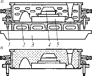 ковш; 4 — заливочная тележка; 5 — заливочный ковш