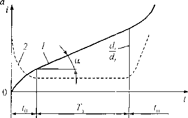 Процесс изменения износа деталей вагонов можно также представить графиком интенсивности изнашивания или темпа износа, т.е. прироста величины износа за единицу времени или пути, пройденного трущимися или соударяющимися поверхностями при относительном перемещении. Такая кривая интенсивности изнашивания 2 показана на рис. 14.1, а штриховой линией.