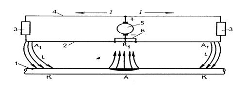 Обмен токов, происходящий между рельсами и подземными газопроводами, в первом приближении можно рассматривать как процесс электролиза, происходящего в системе, где электродами являются соответственно рельсы и газопровод, а электролитом – земля.