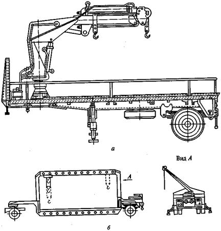 При перевозках на строительные объекты мелкоштучных и тарных грузов (санитарно-технической и вентиляционной аппаратуры, отделочных, изоляционных и кровельных материалов, кирпича, оконных и дверных блоков, небольших по массе и размерам сборных железобетонных конструкций и т.п.) все шире используется контейнеризация и пакетирование. Для доставки контейнеров и пакетов используются бортовые автомобили, прицепы и полуприцепы общего назначения и специализированные транспортные средства – автомобили-самопогрузчики и контейнеровозы (рисунок 5.3).