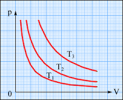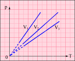 Таким чином, тиск розрідженого газу в посудині постійного об'єму V змінюється прямо пропорційно його абсолютній температурі: p ~ T. З іншого боку, дослід показує, що при незмінних об'ємі V і температурі T тиск газу змінюється прямо пропорційно відношенню кількості речовини ν в цій посудині до об'єму V посудини
