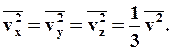 Оскільки усі напрями для векторів швидкостей молекул рівно ймовірні, середнє значення квадратів їх проекцій на координатні осі рівні між собою: