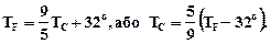 За температурною шкалою Цельсія точці плавлення льоду приписується температура 0°С, а точці кипіння води - 100°С. Зміна довжини стовпа рідини в капілярах термометра на одну соту довжини між відмітками 0°С і 100°С приймається рівним 1°С. У ряді країн (США) широко використовується шкала Фаренгейта (TF), в якій температура замерзаючої води приймається рівною 32°F, а температура кипіння води 212°F. Отже,