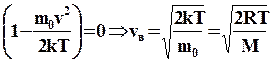 Швидкість, при якій функція розподілу максимальна, називається найбільш ймовірною швидкістю. Її значення можна знайти, про диференціювавши функцію розподілу по змінній vі прирівнявши результат до нуля.