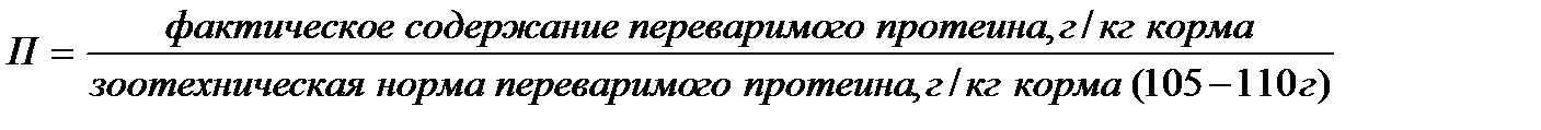 П – коэффициент обеспеченности кормовой ед. переваримым протеином, определяемой как соотношение фактического содержания протеина в одной корм. ед. к зоотехнической норме, т.е.