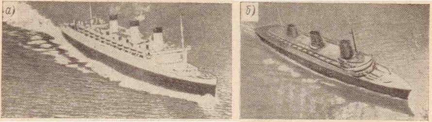 Рис. 2.18. Волнообразование лайнеров «Нормандия» и «Куин Мери» при максимальной скорости: а — «Куин Мери»; б — «Нормандия»