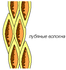Лубяные волокна, вытянутые клетки с разрушенным содержимым и одревесневшими стенками, представляют механическую ткань стебля. Придают стеблю прочность и повышают сопротивление на изломе.